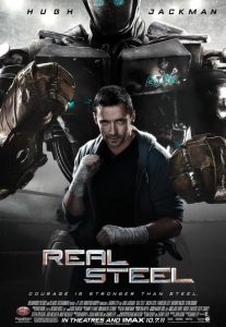 Real Steel inhabits a world where giant robots can mirror human movements. consequently they come to replace humans in most every mechanical way possible. Across the nation people performing nonintellectual jobs are out of work, resulting in mass unemployment and poverty. The wealthy can afford armies of robots to further sequester themselves from the masses; at the same time, banks are broken into in such numbers that cash is rendered meaningless. Criminals enforce their law with murderbots so that property rights and human rights cease to exist. Actually, none of this has occurred to the writers of Real Steel. They only thought up the robots punching each other. So in the film we only see a world that is retarded to an anencephalic degree.