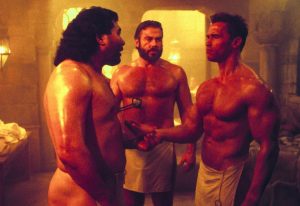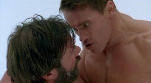 Red Heat opens with possibly the most fully homoerotic twenty minutes in cinematic history. Think I’m exaggerating? The first scene is in a bathhouse! Some will argue that since it was a co-ed bathhouse, the homoeroticism is absent. I say bullshit; all those nude chicks were actually hardcore steroid freaks whose breasts had dropped and whose nuts had been sucked back into the body. Present are guys lifting weights naked… Arnold is also totally nude, of course. As in we are treated to a nice ten-second shot of his ass. Needless to say that within thirty seconds he is “beating up” other guys. He even frolics in the snow with two big bears. After the nude-fighting, the “partner” actually tells Arnold that he noticed the both of them are circumcised. For reals! The bad guy Victor then shoots Arnold’s “partner” dead and Schwarzenegger is so shaken up he can’t attend the funeral. He can, of course, swear revenge. Using the “violence as a substitute for man-love” metaphor, the above means that Arnold caught his “partner” in bed with the bad guy, and now he wants a piece of that sweet, sweet ass for himself. Additionally, remember that when Arnold gets to his hotel in Chicago, he turns on some porno where a woman is clearly getting fucked. He then starts shaking his head “no.” I’m not making this up. Red Heat = gayest of all.