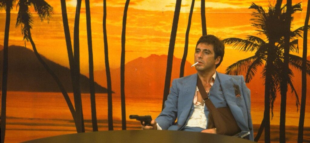Well, now he’s the boss man. King of the white, powdery hill. Lords of snorts. God of… everything, man! He even gets to meet Pablo! Yeah, man! That other white meat! They strike up a deal for delivering massive amounts of the good stuff to the fair people of the greater Florida region and celebrate it by throwing someone out of a helicopter. Cheers! To good business…