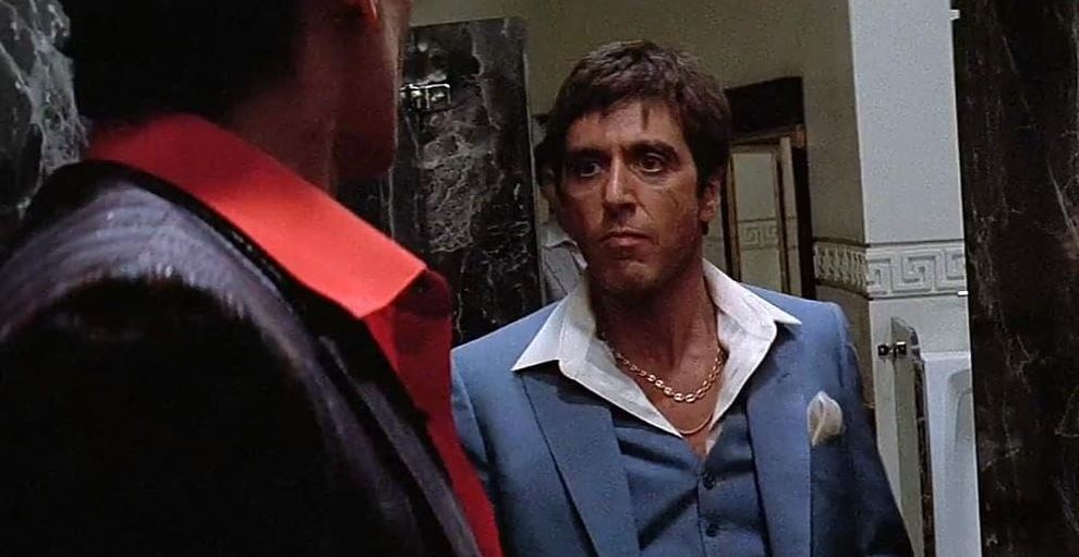 For now, all is well. Everybody’s very rich, very coked out, and things run smoothly for a while. But then, everything gets totally effed up. You see, Pablo wants to sell as much coke as humanly possible to every single person on the planet, and in order to do that, some communist crap-fest giving a lame anti-drug speech to the United Nations must die. Obviously. We can’t have that! We want our drugs! Die, fucker! Only, the thing is, our Tony, he may be this stone-cold psychopath who’ll put a bullet between your eyes just as easily as he says hello, but as it turns out, he does not like murdering women and children. Aww! Isn’t that sweet? So, when the creepy assassin who does like that wants to blow everyone to kingdom come, Tony puts a bullet between his eyes. Hello!