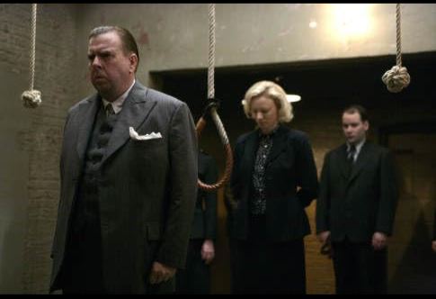 Worryingly, Pierrepoint justifies his lethal behavior in much the same way as the Nazis, in that he’s essentially following orders. “You do your job,” he tells an assistant “and I do mine. And I shall sleep soundly.” Is it even remotely fair to compare Pierrepoint with someone like Kramer, the so-called Beast of Belsen? Both killed with their government’s blessing, one in the name of racial hygiene, one in the name of justice. Yet we’ve already learned from the grainy news footage of Belsen played at the cinema Pierrepoint attends with his increasingly unsettled wife that everything there ‘was done with hideous precision.’ Both wanted to be rid of their victims as quickly as possible.