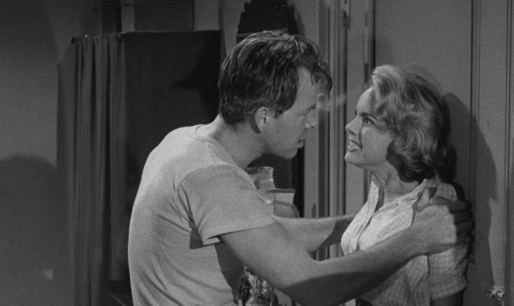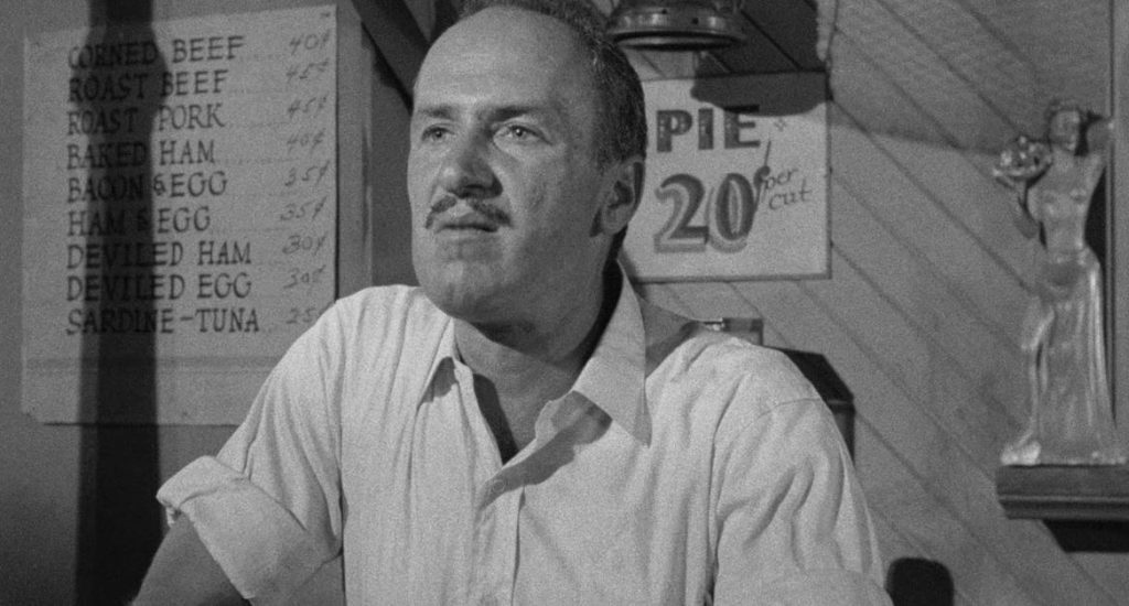 The stage is set on a dark and stormy night. Out the front door of the diner the storm rages. Right out back on the beach, all is calm for the shootout between the feds and Slob’s henchman, played by the youthful Len Lesser (came to fame as Seinfeld’s Uncle Leo) as Perch, a commie rat for pay fishmonger.