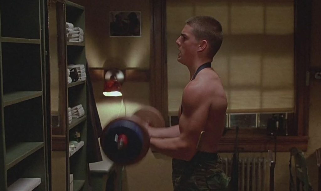 In terms of screen time, things improve in the drawn-out, faintly loopy Taps. Here Tommykins moves on from tales of irresponsible fire lighting to wearing a natty red beret while chatting about Dungeons and Dragons or watching Star Trek. He’s a pumped-up cadet at a military school, only too happy to sit behind a heavy caliber machine gun when a decision on high to shutter his brain-warping residence is rejected by the kids. Quite what enough military-grade weaponry to reinvade Nam is doing at a school for youngsters aged twelve and up is never explained. Meanwhile the gung-ho, shaven-headed Cruise takes his shirt off again and works out in front of the mirror, perhaps still yearning for Iceman’s approving glance. Sure, he’s more convincing in Taps than Endless Love, but loses a lot of marks for gunning down a member of the National Guard rather than his insipid boss, Ordinary People’s Timothy Hutton.