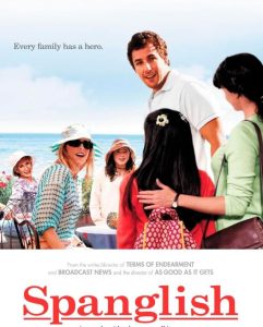 The title refers to the clash of cultures that Brooks seeks to explore, which means, if we are dealing with the United States and Mexico, it will involve a wealthy white family and a Mexican woman serving as their maid. The maid in question, Flor (Paz Vega, who is a dead ringer for Penelope Cruz), comes across the border (legally, I think) with her daughter, sets up shop in California, and is eventually hired by Deborah Clasky (Tea Leoni). Deborah is a typical Hollywood creation, or more accurately, a typical Brooks woman — white, neurotic, and prone to teary outbursts. Her husband, John (Sandler), is a world-class chef, who just happens to own his own restaurant.