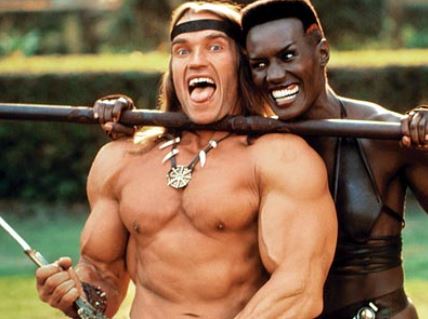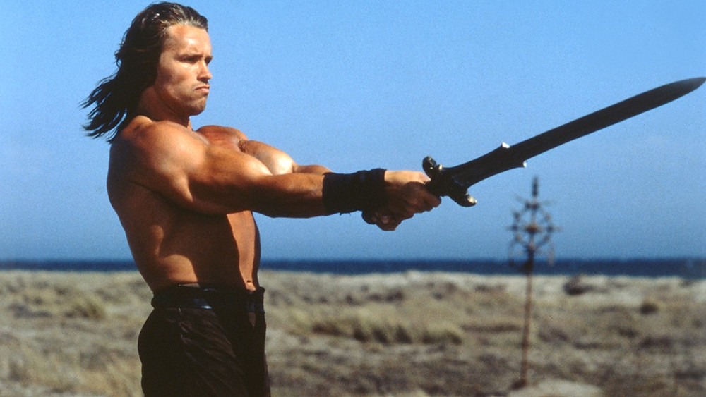 Arnie actually made his starring debut in 1970’s Hercules in New York (in which he must have been about sixteen) but I’m going to ignore it because it’s a cheapie load of embarrassing rubbish. His acting career only started gaining traction with a supporting role in the weird, barely comprehensible Jeff Bridges clunker Stay Hungry. Its lone interesting aspect is its cast, unless you have a real need to see Arnie play the violin, dress up as Batman while lifting weights or fail to punch anyone. I’ll admit his acting isn’t too bad, but rewarding him with a Golden Globe for playing an Austrian bodybuilder (i.e. himself) was bloody generous. Better is the amusing, similarly gym-based doco Pumping Iron, although it wasn’t until five years later that Arnie exploded onto the mainstream with the massively influential box office hit, Conan.