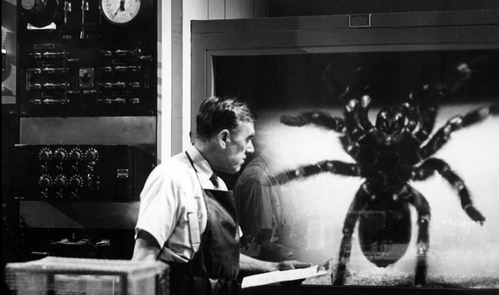 It was in this spirit, wide-eyed and wondrous, that I first saw Tarantula. Not at my grandmother’s house, mind you, but alone, at home, eight years old. Shimmering eerily in black and white, glowing from that big old cathode ray tube TV and me, all alone in my parents’ living room, watching a movie about a mad scientist who breeds giant hamsters in his lab in the deserts of Arizona. For the good of mankind, you know. Lots of ham-burgers. And a spider, too, for some reason. And then that spider escapes.