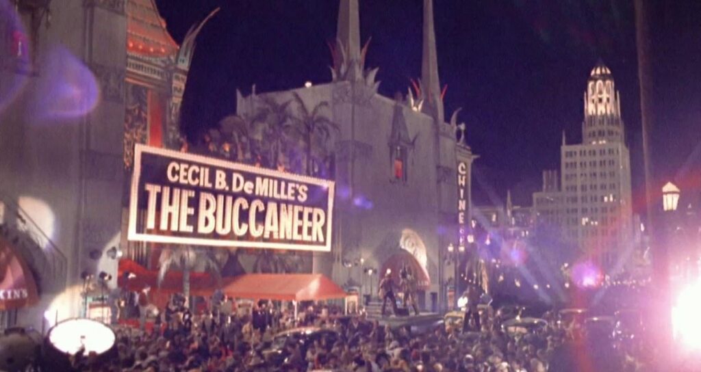It’s the premiere of Cecil B. DeMille The Buccaneer at Grauman’s Chinese Theatre (Fredric March’s French accent is good for a few laughs). The crowd is amped up at the sight of seeing the silver screen gods as they exit the limos. The explosive charge is ready to blow and all it takes is the smallist tremor of spark to set it off. Enter, a confused, muttering Homer Simpson.