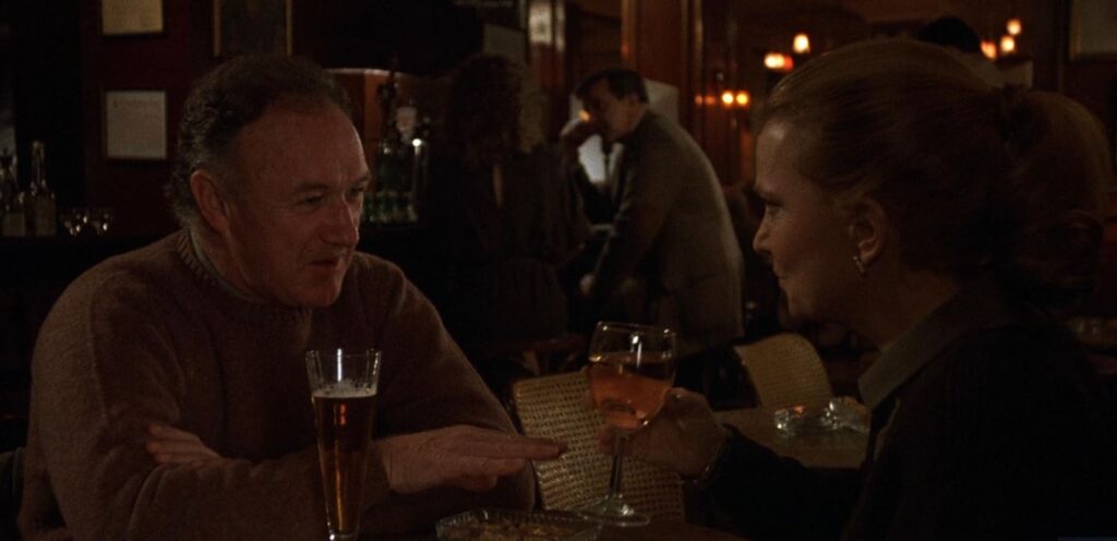 When Marion is finally able to say at film’s close – “I felt at peace” – we have Larry to thank. Hackman, really. Because even Woody Allen instinctively understood that if you want to fashion a character that could, under almost any circumstance, cause a woman to drop everything and run away to parts unknown – it would be Eugene Allen Hackman. Sure, he’s more symbolic than real, and too often left for the storybooks. He’s the one to inspire the gaze out the window, a slight drizzle lightly tapping at the glass, wine in hand. That thousand yard stare, then a deep breath. Maybe the eyes glisten a bit. If only. Once in a blue moon for most. After 50, daily. There for a moment, then gone forever. We spend our lives asleep, but at least Marion finally woke up.