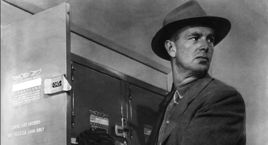 “Any time you take a chance,” Johnny tells Fay early on, “you better make sure the rewards are worth the risk, because they can put you away just as fast for a ten-dollar heist as they can for a million-dollar job.” Johnny knows the score, which explains his grim resignation at the way things ultimately turn out. In the beginning, though, he has an elaborate scheme involving blind participants paid in advance to do specific tasks without knowing anything of the overall plan, much like a genius inventor might delegate the building of smaller parts to various work crews who know nothing of the grand design for the invention.