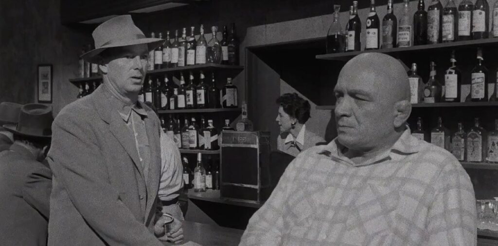 Perhaps even sadder than George’s unrequited devotion to the treacherous Sherry is Marv’s paternalistic love for Johnny. Before the robbery he pines wistfully, “Wouldn’t it be great if we could just go away, the two of us, and let the old world take a couple of turns, and have a chance to take stock of things? It can be pretty serious and terrible, particularly if it’s not the right person. Getting married, I mean.” Clearly this half-hearted attempt to sabotage Johnny’s plans to marry Fay is not so much a vision of the misery lying ahead for Johnny, but that of Marv’s own future without the younger man.