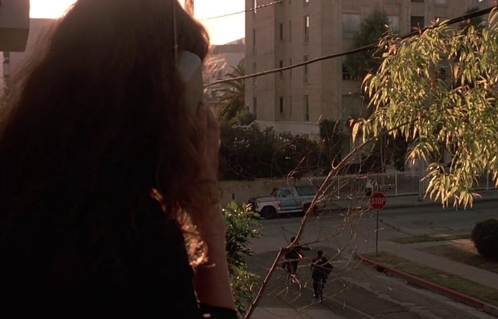 Sharon spends her evenings in group sex and other sinful pastimes, like smoking cigarettes and making banal observations. One such evening she and her middle-aged boyfriend (who “likes to watch”) hook up with an ex killer for hire named Randy (played by David Duchovny without the boyish charm evident in his role of Fox Mulder on The X-Files a couple of years hence) and his big boobed girlfriend.
