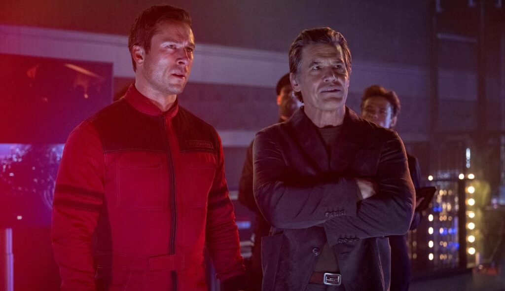 Ben Richards (Glen Powell) badly needs money. He keeps getting fired from jobs over anger issues, his wife is working double shifts at some kind of dive, and his very young daughter has the flu and needs real medical attention. In desperation, Ben decides to audition to be on any of the sadistic game shows put on to distract people by feeding their bloodlust. After tryouts, he and two others are selected for the most lethal, but lucrative game – The Running Man. At first, he refuses to be on the game, but show producer Dan Killian (Josh Brolin) convinces him to do it.