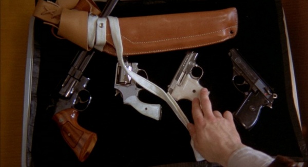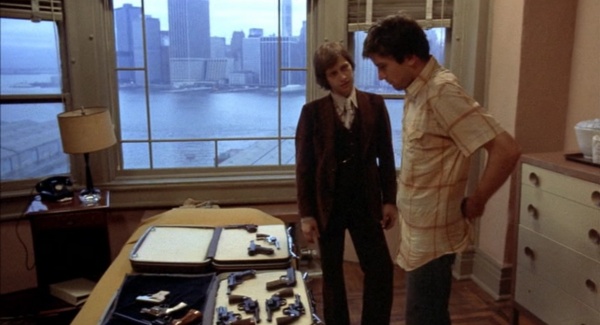 He meets clients only through referrals. And in random cabs. From there, to flophouses and drug dens passing as hotel rooms. Untraceable, like his merchandise. He lays out his wares like an urban Willy Loman, everything so shiny and proud, you’d think it was the Queen’s own silver. His descriptions are loving, almost tender. “That’s a beauty,” he says of the Magnum, as if its next stop were the Louvre. He continues: “Stop a car at 100 yards, put a round right through the engine block.” And how. “I just deal high quality goods to the right people,” he states, blandly, as if it’s the most obvious fact in the world. While Travis tries out a .380 Walther “given only to officers in WWII,” Andy stands back, admiring the scene. “Isn’t that a little honey”, he coos, beaming with a father’s love. It’s no accident that Travis buys him out, right then and there.