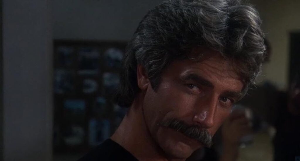 If reincarnation is our lot after breathing our last, I can only hope I come back as Gar. Never did catch a last name, but I’m doubting one was necessary. Say it out loud – always in hushed tones – and even the uninitiated have some idea. Hell, the name itself seems to conjure the very look of Sam Elliott, circa 1985. Mask is based on a true story, so there might have been such a man walking the earth at some point, but if so, I don’t want to know about it. Reality couldn’t possibly measure up to the fictionalized account. For here, in a movie about the triumph of the human spirit, is the most fully realized portrait of masculinity ever seen by mortal eyes. Whether sleeveless or filling out the world’s greatest t-shirt (“Moustache Rides”), he is everything we hope to be and usually fail to achieve. Break the mold and shut this shit down.