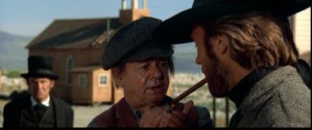 The scene in which The Stranger (Eastwood) bestows both titles on Mordecai is legendary to be sure, and one of the few times in cinema history where a midget emerged triumphant. Sure, few might actually take Mordecai seriously, but when you’re backed by a squinting madman, you’ll pay attention, at least as long as that same madman sticks around. “I’m the sheriff?”, he squeaks. “I’m the sheriff! I’m not a runt anymore, I’m the sheriff! And the mayor!” In an instant, the quiet, embarrassed midget becomes a giant, and he’s not going to hide under tables and porches any longer. Instead, he’s about to get all up in your business. And if you doubted him, take a look at him standing proud as a peacock before the Lago faithful as they prepare for drills. Top hat, bullets strapped across his chest like he’s a pint-sized Pancho Villa, Mordecai is an image of the new West. Sure, the ultimate DEI hire, but without elections, he’s in for life. Deal with it.