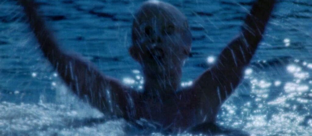 Summers pass, and we finally reach 1957. That fatal year that would, unknowingly, begin a chain of events that would result in at least three dozen deaths, most occurring within minutes of coitus. A historic bloodbath, all because of a mistake. No one’s fault, really, only Mama Voorhees doesn’t see it that way. She was working, dammit, and you were supposed to be watching the boy. But as counselors stripped bare and pounded away, little Jason, tired of the isolation, decided that on this day, he would show the world. He could swim, he believed, and no one would say otherwise. So as the roar of orgasm filled the air, Jason ambled down to the lake. The Crystal Lake of legend. Like Icarus to the sun, he flew too high. Hubris reigned. He could not, in fact, swim, and he sunk to the bottom like a stone. Dead, before ever learning to fly. The body was never found, but we can assume. And yes, a mother knows.