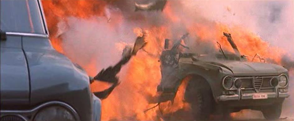 A prisoner asks to take a leak during a train journey, and using the old chestnut ÂI can’t do it if you are watching”, produces a knife and stabs his guard, taking his submachine gun and mowing down three other guards that stupidly run one after the other to get in his line of fire. During a chase, a police car slightly nudges the car of the robbers, causing it to roll over, fly and get gloriously crushed in slow motion against a tree, killing the criminals inside and, ooops, the two women they had taken hostage. Too bad the stunt car is clearly empty: didn’t they have dummies around in the 70s?