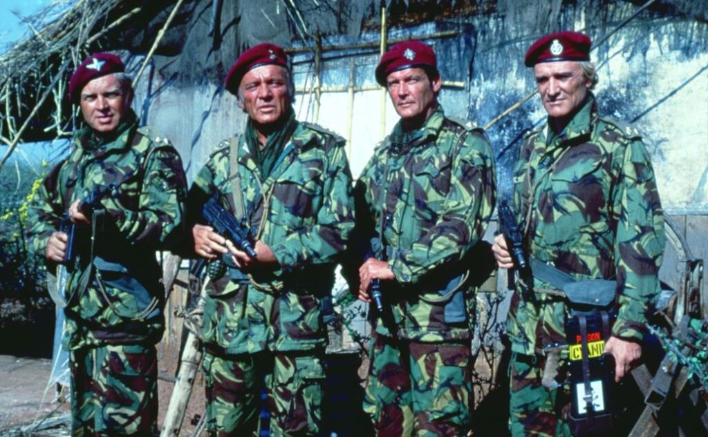 Like Kelly’s Heroes, The Eagle Has Landed and Von Ryan’s Express, The Wild Geese is a fun men-on-a-mission pic ideal for Sunday afternoons. None of it is dusted in diamond-hard realism, with events sometimes unfolding in a ‘that’ll do’ sort of way, but it’s off the wall elements always entertain. Akin to that Chuck Norris terrorist extravaganza Invasion USA, its very high body count pleasingly unfolds at Christmas. Some of the soldiers are in their sixties. The Wild Geese is also chock-full of homoeroticism, such as one man being asked: “How would you like to whip fifty men into shape?” Chaps express unbridled joy at being reunited, they talk of love, an actual gay man is held without question at the unit’s bosom, and they’re honoured to die for one another. The ladies are as scarce as subtlety, and the one who actually manages to fit in a few words amid all the testosterone and male bonding naturally gets beaten up. Know thy place, woman!
