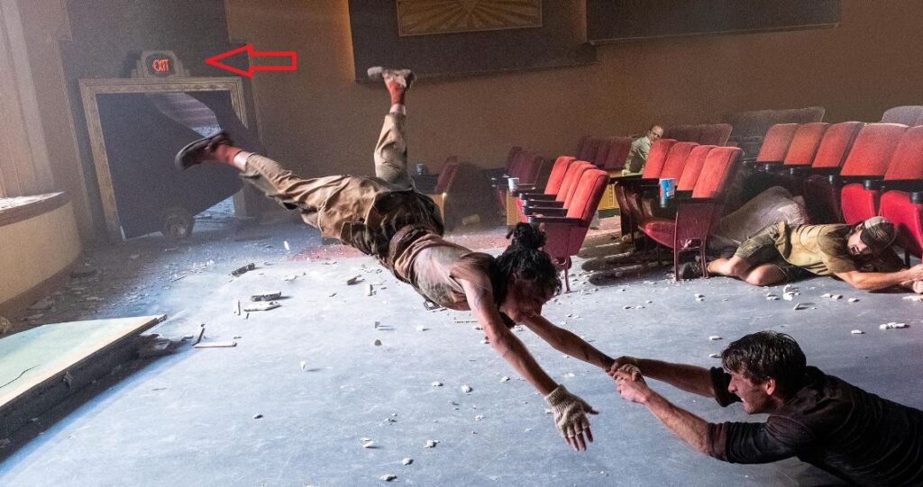 By this point in the movie, it’s painfully obvious that Twisters is going to follow the same path as Twister. But just to make sure even the people in the back get the message, here is how the rest of the film goes. Single twister. Then sister twisters, where Tyler decides not to follow Kate and Kate gets it right. Night twister, where Tyler and Kate rush a bunch of people from their motel into a concrete pit to escape. Giant twister finale where kink is worked out of the science thing from the beginning of the movie. Everyone got it now? No?