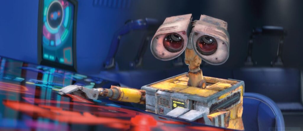 He is, as we learn, the last functioning robot on Earth. Once there were whole armies of the little buggers, but now Wall-E is the last one left. He’s developed a bit of personality, as one tends to do, and stays alive by scavenging parts from his dead mates. He made something of a home for himself from a large truck, in which he collects all sorts of things. His only companion is his pet cockroach, Hal. He happily goes about his business of compacting, compacting, and then more compacting—until one day his routine is interrupted by the arrival of Eve, an advanced, sleek, floating robot sent to Earth by the company that built the spaceships to check whether the planet is recovering. Do they fall in love? Do they eventually save not only the planet but all of mankind as well, while subtly delivering a strong message of love, perseverance, and rampant eco-whining? Well, if you’re one of those very few people who haven’t seen this movie, I’d suggest you find out for yourself. But the answer is yes.