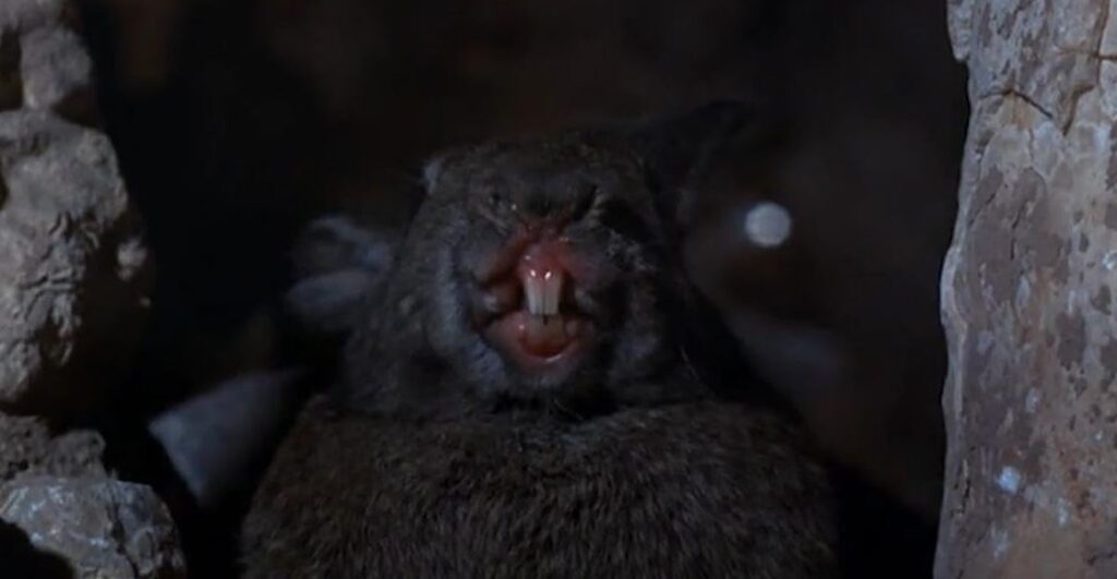 Stronger than ever, they run and hop through the desert, sounding a bit like an obese child running up the stairs. There’s also an occasional squeak amidst the heavy breathing. Within seconds, the rabbits attack Cole’s farm, munching on horse and man alike. Tucking his family away in a cellar, Cole guns down as many rabbits as he can, though some manage to chew through the wood to get at the hiding humans. “Sounds like a cattle stampede,” he cries, though these buggers fly into the air like missiles when shot from below. Finding little flesh on which to feast, the rabbits turn towards the general store, happily obliging the owner with her final wish to have her throat chewed away. Even then, the old lady lets loose with a scream loud enough to shatter what glass the rabbits left unbroken.