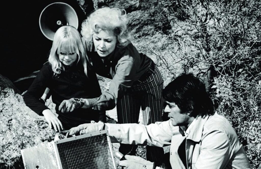 Once her parents’ backs are turned, she switches a rabbit from the control group with one of the infected variety, and within minutes of having it home, allows it to escape into the wild. This is unknown to the Bennetts, and, of course, the unsuspecting public at large. But surely they wouldn’t fear a single bunny with super-sized hormones coursing through its veins, would they? It’s not like he’ll fuck like a rabbit or anything and turn 1 to 1,000 over a long weekend. And with the approval and aid of fellow scholar Elgin Clark, what could go wrong? Matters are helped by the fact that Clark is played by DeForest Kelley with the era’s thickest moustache, and second tightest pair of slacks.