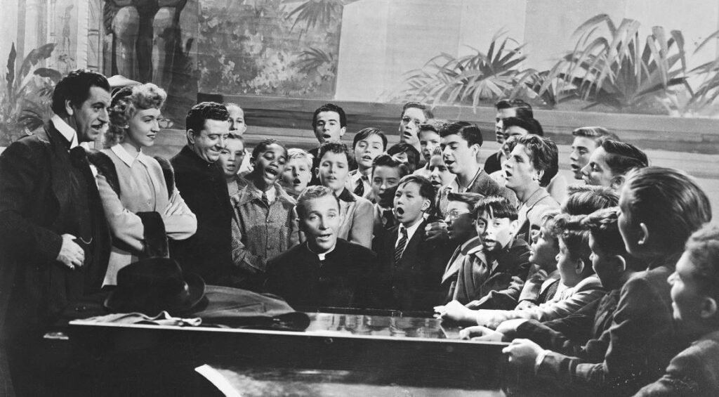 And so we arrive at 1944. Nothing to see here, except a cataclysmic World War, and all the moguls can think of throwing at a nervous public is yet another tale of a collared do-gooder doing good, whether it’s single-handedly eliminating juvenile delinquency in our time, or hitting the links to perform one impossible shot after another. Naturally, since the collar in question belongs to the Crooner in Chief, Bing Crosby, he’ll also have a fondness for belting out a tune, something he manages to do no less than six times in a film ostensibly not a musical.