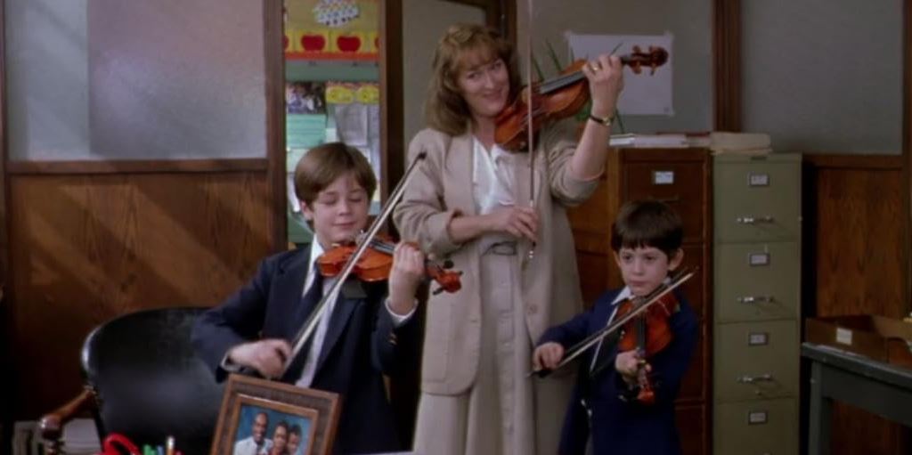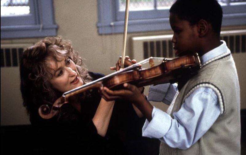 I usually see every Oscar nominated film and performance, year after painful year, but when one is missed, it’s usually a deliberate omission. While over 25 years have passed since Music of the Heart hit theaters, the premise alone rattles my skull with remembrance as to why it evaded capture. An abrasive white woman (Roberta Guaspari), fresh off a divorce, two kids in tow, decides to move to Harlem to teach a bunch of black and brown kids the violin. That more than covers it, but let’s continue. She’ll be disrespected at first, but after a few classes and immeasurable sass, the teacher wins over the youngsters, also charming a gruff principal in the process. Still more. The kids pull it all together for a concert, where the deafening applause leaves not a dry eye in the house. Even the skeptical parents come around and roar like seals.