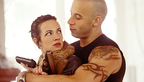 Personally, I had very high hopes for XXX. As some of you may know I love Vin Diesel, and here was a real opportunity for him and Rob Cohen to prove that The Fast And The Furious wasn’t a fluke. I’m here to report that it was. I should give you all a little background on director Cohen. He used to direct the TV show thirtysomething. Then he did some really terrible movies (Daylight, Dragonheart, The Skulls) before shaving his head, piercing his ear and making The Fast And The Furious. Apparently he is dating a woman half his age now, too. Which is all fine, except for the fact that with XXX you got a movie aimed squarely at fifteen year old boys made by a man who was born when Stalin was still running the U.S.S.R. [Ed Note: 1949]
