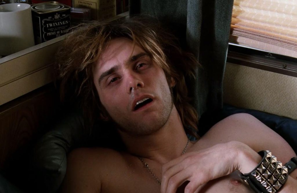 Carrey probably doesn’t have too much fondness for it, though, given he plays a drug-addicted rock star with the rather uncool name, Johnny Squares. He’s introduced in a bedroom praying in a black cape as the jagged, reverb-laden chords of Welcome to the Jungle kick in. There’s someone dead on the bed with a giant afro and a nightie all the way up to her neck. His mother, perhaps? His useless agent? Who knows? Whatever the case, we’re clearly on the set of the great man’s latest music video.