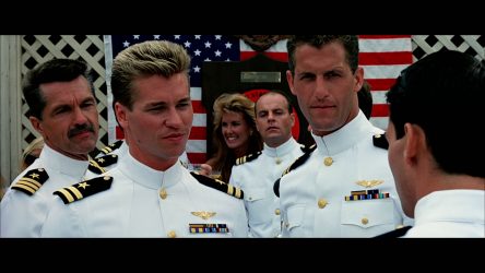 To start with, Kilmer is a statuesque God compared to the gargoyle-like appearance of Cruise, not to mention a better actor (an actor, let’s be honest). His is a command presence that never wavers when onscreen, and he is presented as ‘Ice-cold, with no mistakes’. When we meet him, he is in a perpetually good mood, and even his taunts are in the good spirit of competition. “The plaque for the alternates is in the ladies’ room” was the high-water mark for humor for me as a teenager. He has ego to spare, but considering that he is considered one of the best in the world at his job, I would not begrudge him that indulgence.
