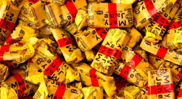 Hard but soft. Honey-ish, but not bee-honey, more like yellow-jacket. This confusing rectangle has been the enigma of the pumpkin pail for 80 years. It’s not appetizing but still manages to be prevalent, and their origin is a mystery, I’ve been looking my whole life, but I have failed to ever see a bag of Bit O’Honey in the store. It lends credence to the theory that it is government issued as a way to rid federal warehouses of obsolete fire retardant. Think I’m jokin’? Alex Jones did a whole thing on it.