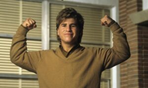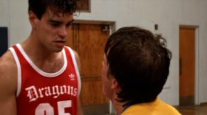 Anyway, you all know the story – Johnny and his fellow Cobra Kai kick the shit out of Daniel-san one too many times, inciting an old Chinaman to come out of retirement for ONE MORE FIGHT. Zabka pretty much plays the same character again in the two other aforementioned movies. In Just One of the Guys, William stars as Greg Tolan, a rich weightlifting suburban kid who unbeknownst to him, somehow, bullies a girl posing as a boy for some reason I can’t remember. Eventually, Greg gets his ass kicked by a 30-year-old sexually confused high schooler and we see the gender bender’s tits and they’re AWESOME!